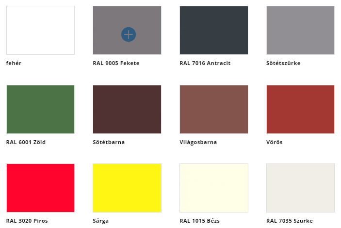 | Elérhető színek | világosbarna, sötétbarna, fekete, bézs, fehér, zöld, szürke, piros, vörös, sárga, sötétszürke, antracit |